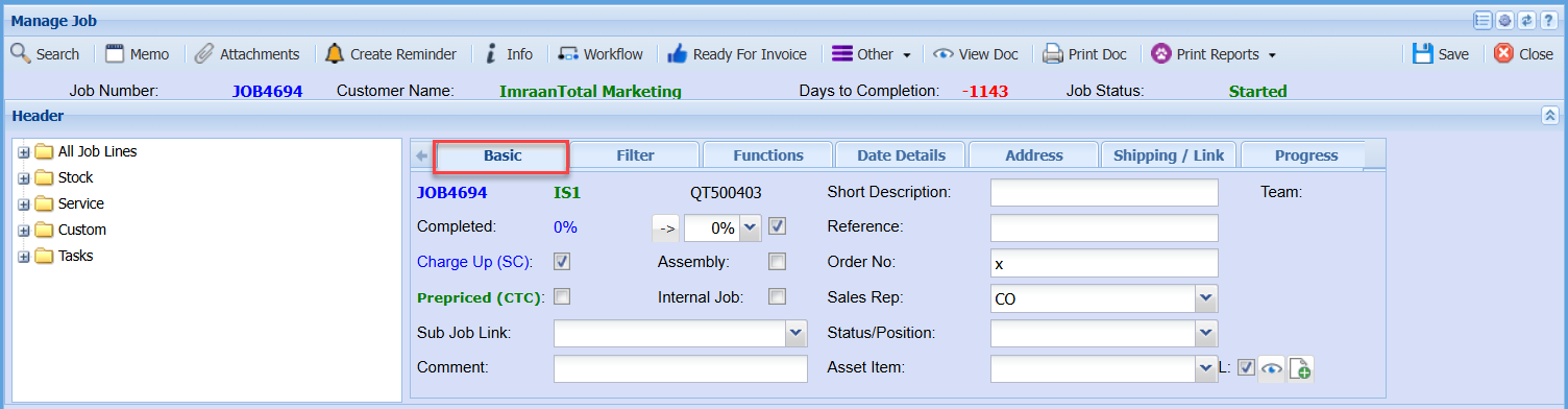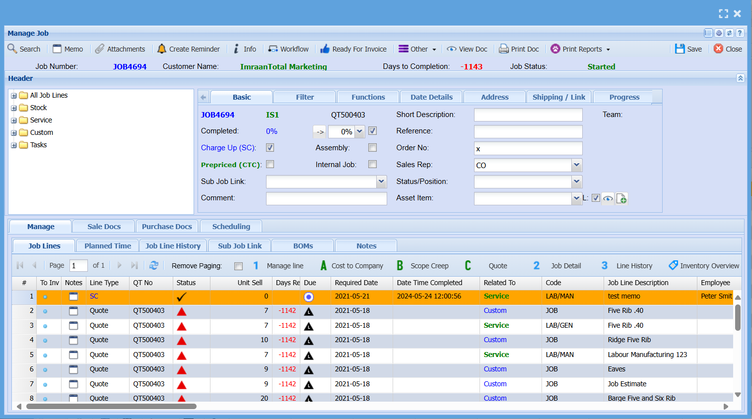 | Delete Job Line |