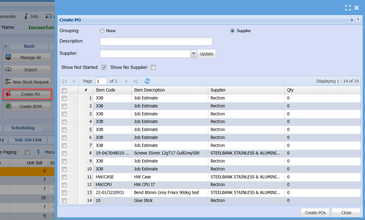 | Create POs |