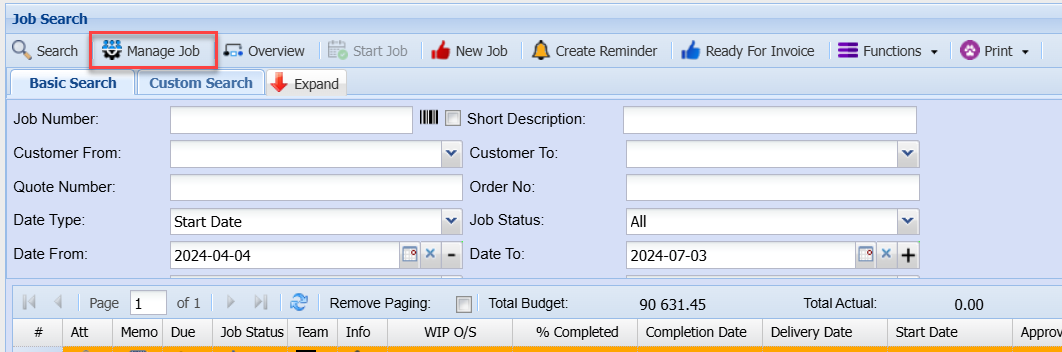 Manage Job Button