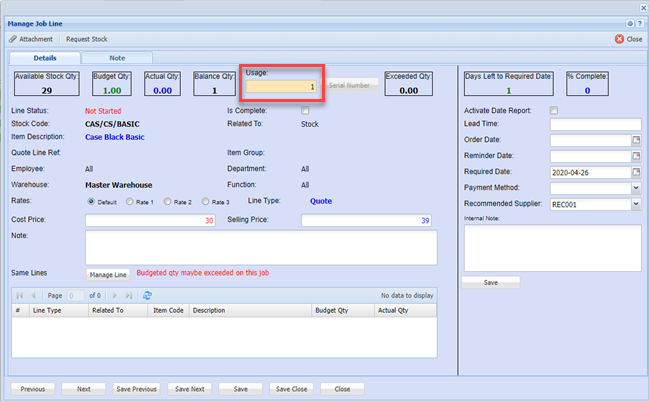 Take note of the actual quantity, Exceeded Quantity, Budget Qty