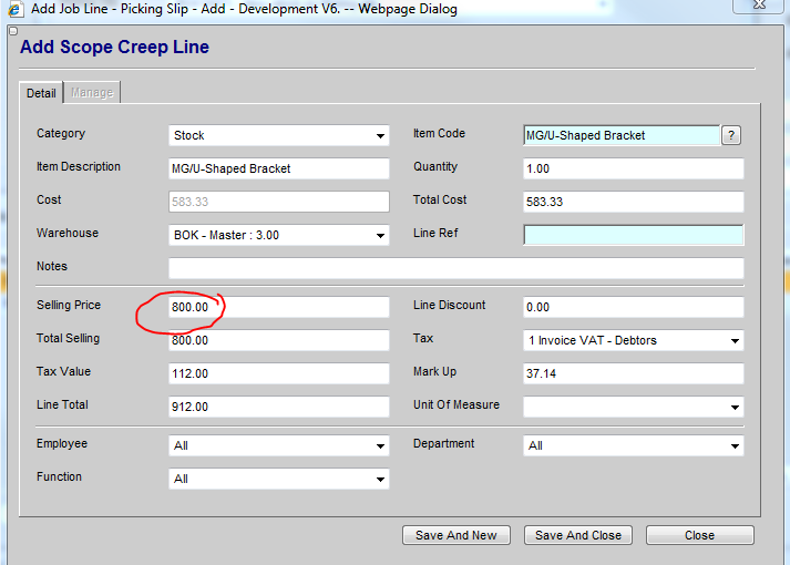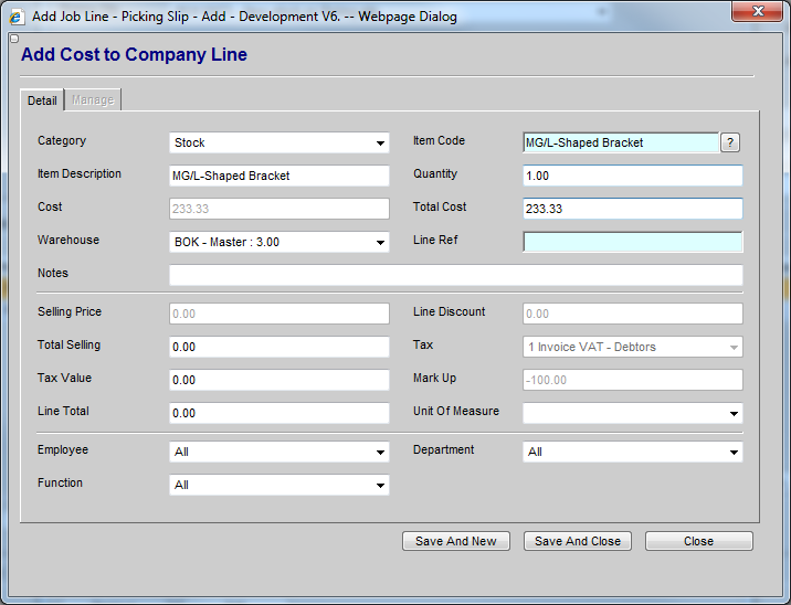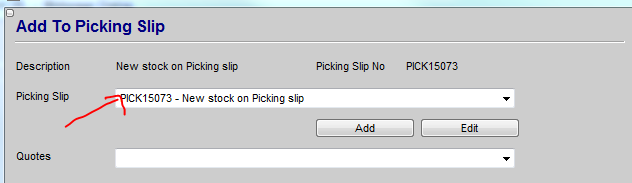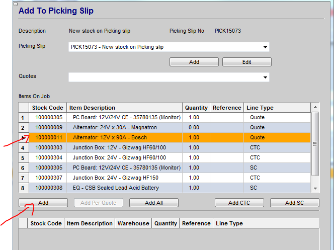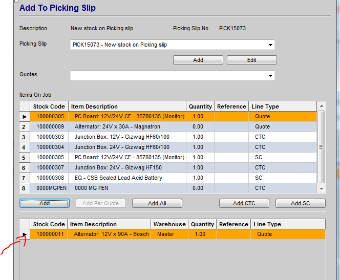 This is where one can add stock onto a picking slip on a job from items already added on from a quote.