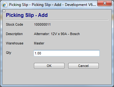 After clicking on Add, a window will appear for you to put a quantity onto the picking slip.