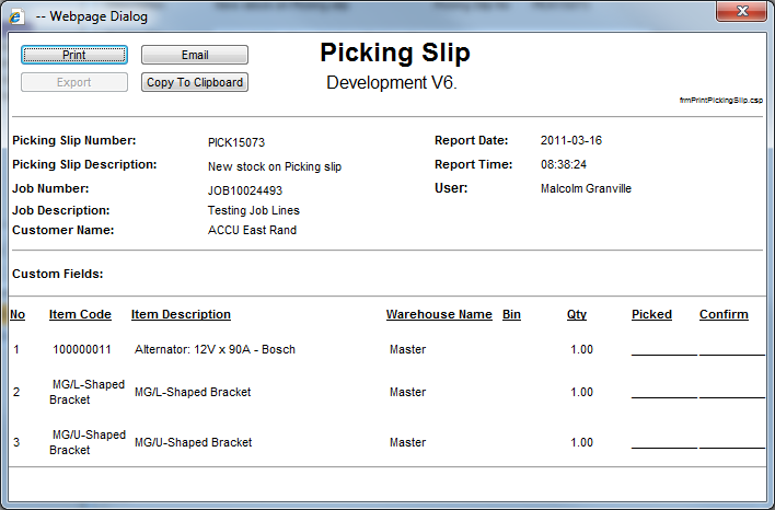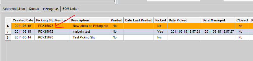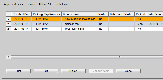 When the stock is then picked from the stores, the store man will highlight the picking slip and click on Picked.