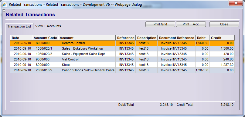 This is a view of the related transactions after processing the invoice.