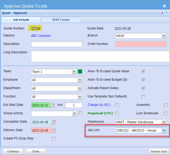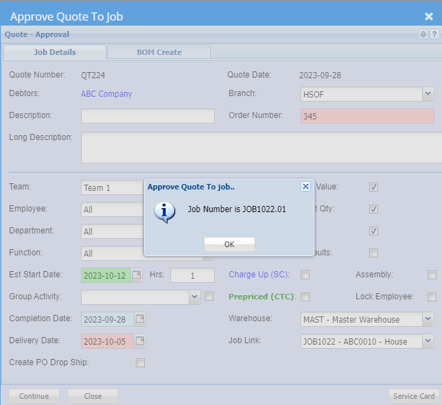 Then when promoting the quote to the job it will create a new job.