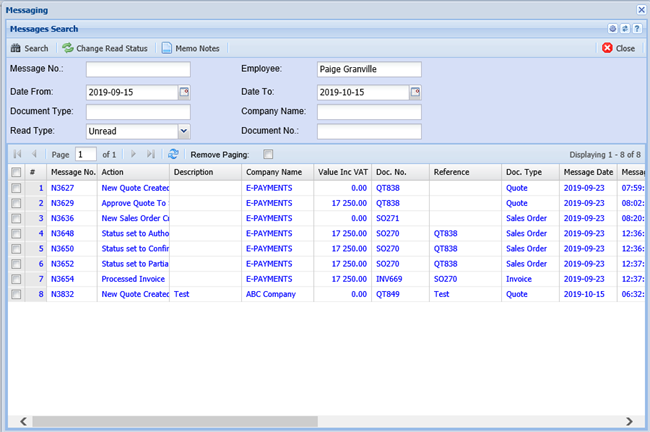| 3 | Read Type: unread or read messages will be displayed according to the type selected |