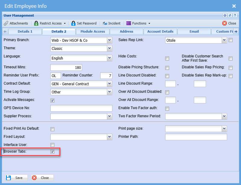Browser Tabs allows you to open modules and windows in tabs instead of a new window
