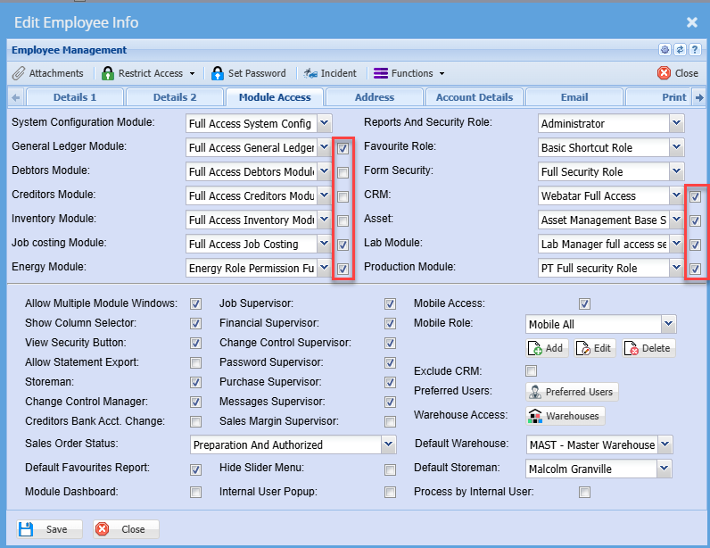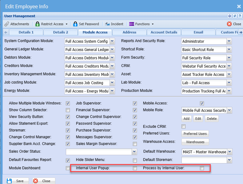 Module Access Tab