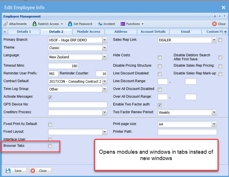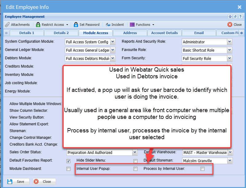 Module Access Tab
