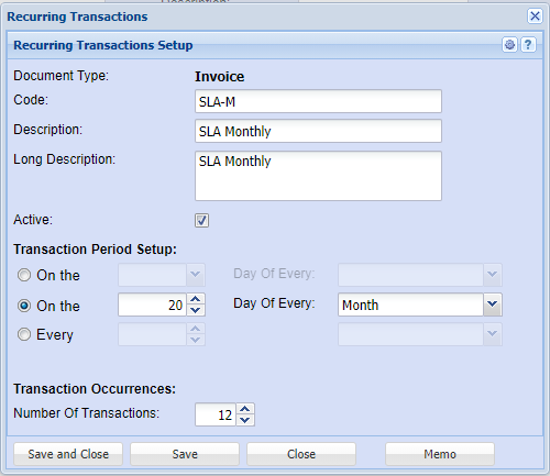 Recurring invoices Setup