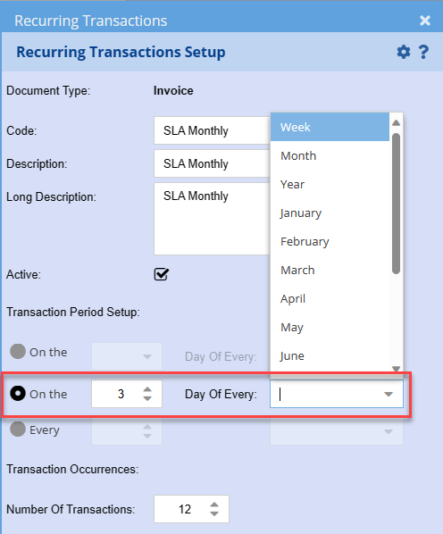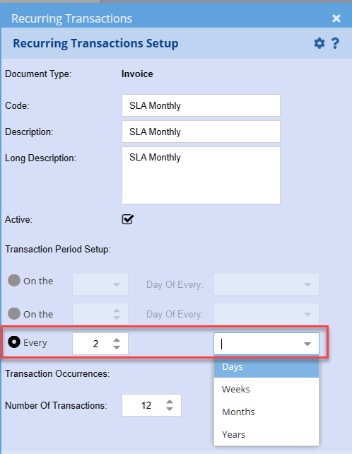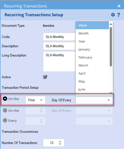 Transaction Period setup