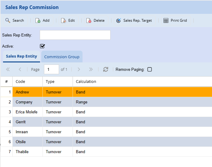 Commission Group – shows commission groups