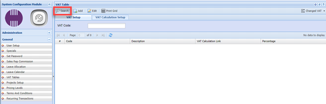Click on VAT Tables and search