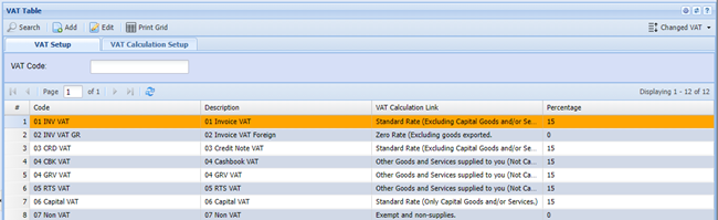| Add | Allows you to create a new VAT Table. |