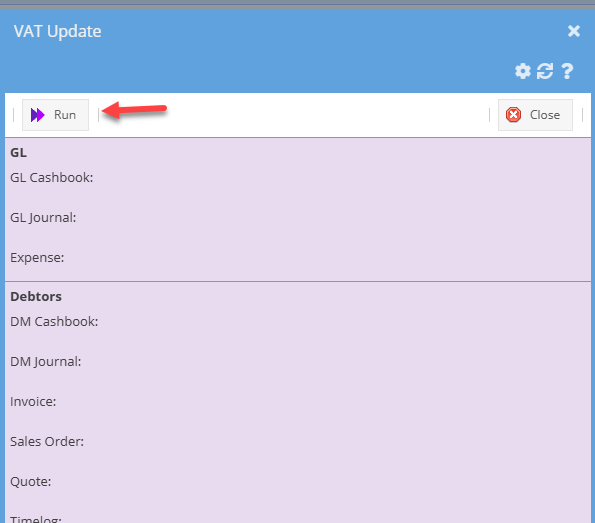 This utility will look for all open documents and update the VAT value displayed on the document and search grids.