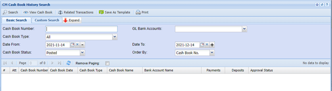 | Bank Account | search by selecting bank account from the drop down arrow |