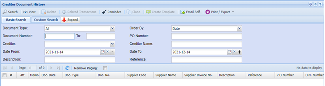 | Date To | to limit the document search by entering the date to |