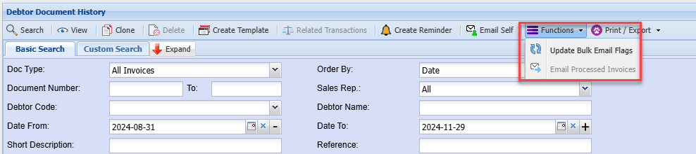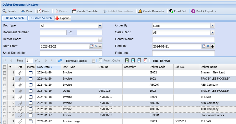Search on all posted debtors documents