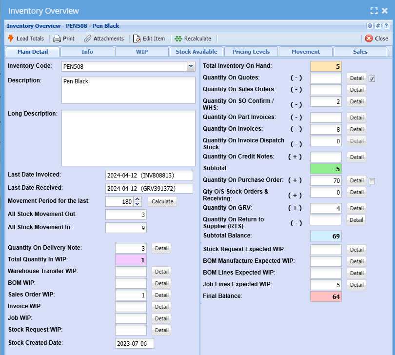 The inventory overview window allows a quick access to view information on an item.