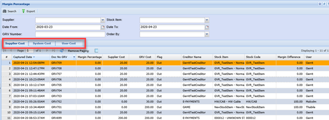 Search - the user must select the either the Supplier or Item Code when searching for margin percentage,