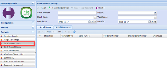 Serial Number History Menu