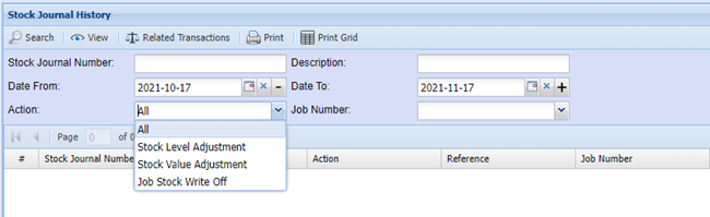 Stock Journal Number – The user has an option to search by a given stock journal number.