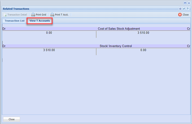 and you can see where movements on this Stock Journal affected which General Ledger Accounts.