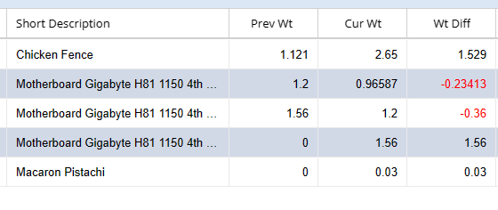 If the weight is below the previous weight, the weight is logged in red with a negative figure