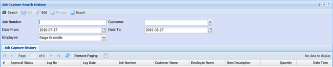 Job Capture Search History