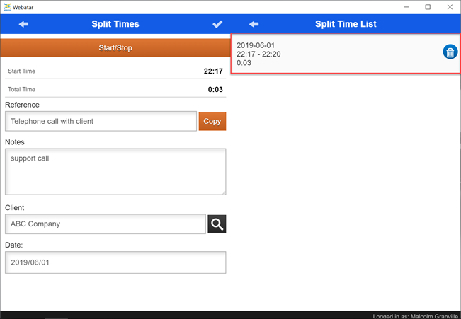 This time is used where you want to go into detail for every minute. Having a start stop button capturing time against a client.