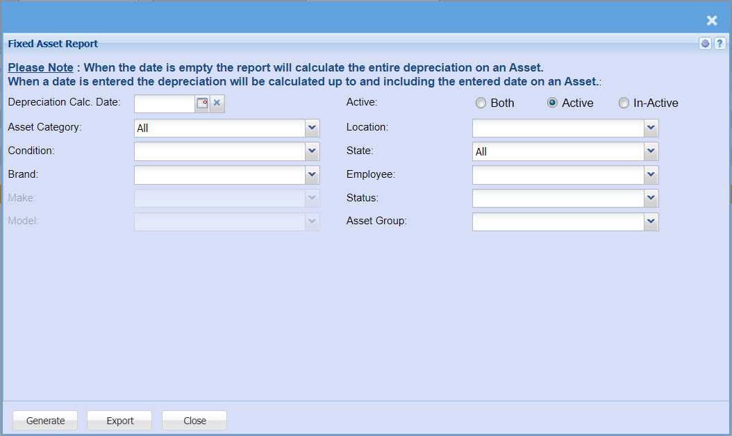 Fixed Asset Report
