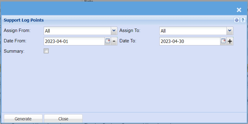 Support Log Statistic Report