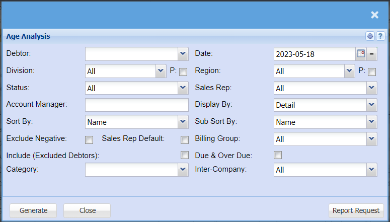 | Show Inactive Tick | By ticking the Inactive box this will include inactive Debtors/Customers in your report |