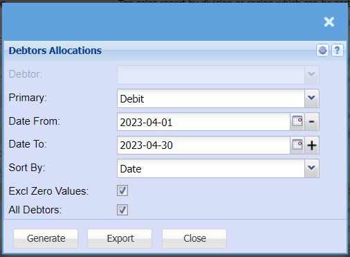 | Debtor | Select a Customer/Debtor you wish to view the report for |