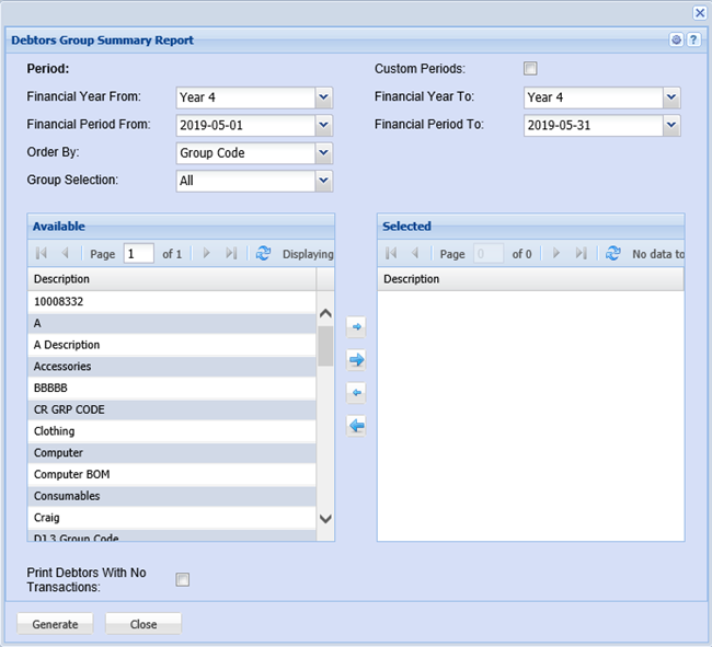 Groups – to select the group code from available list by using arrows