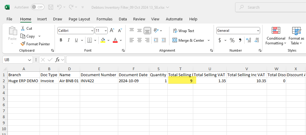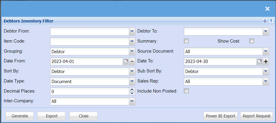 Debtors Inventory Filter