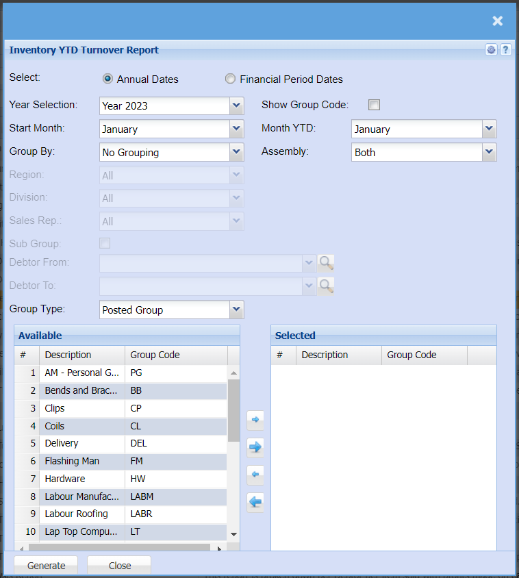 | Select | Select if you want to pull your YTD Turnover Report using Annual dates or Financial Period Dates |
