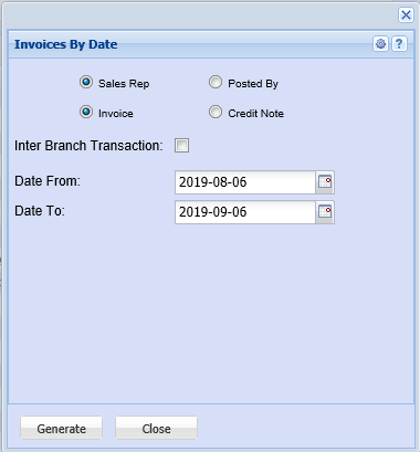 Shows summary of invoices and credit notes by rep or date, also is an inter-branch report for invoices.
