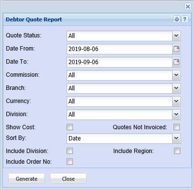 Gives a report of all quotes in different status levels with dates and values on each quote.