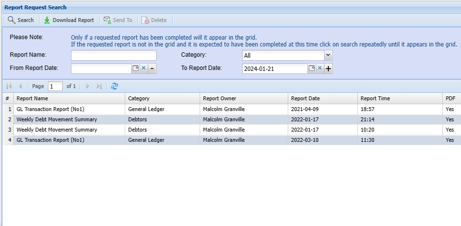 Report Request Search
