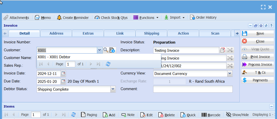 | Close | Alt + c | Closes the Invoice window |