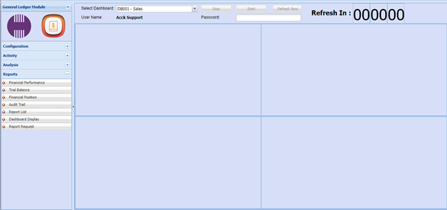 General Ledger > Reports > Dashboard Display
