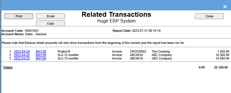 | Show Zero | Enable show zero to show all accounts that have not had a movement in them within the period that you have selected |
