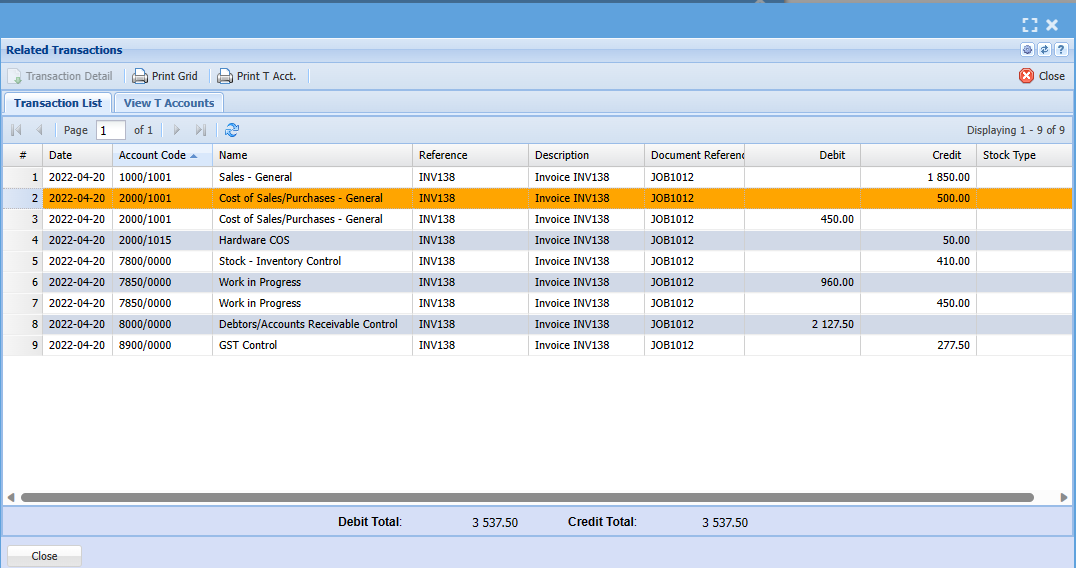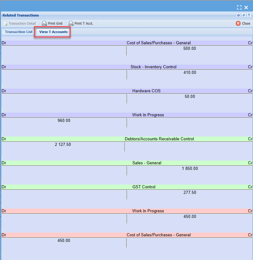Click on the Date for Document T-Accounts debit and credits