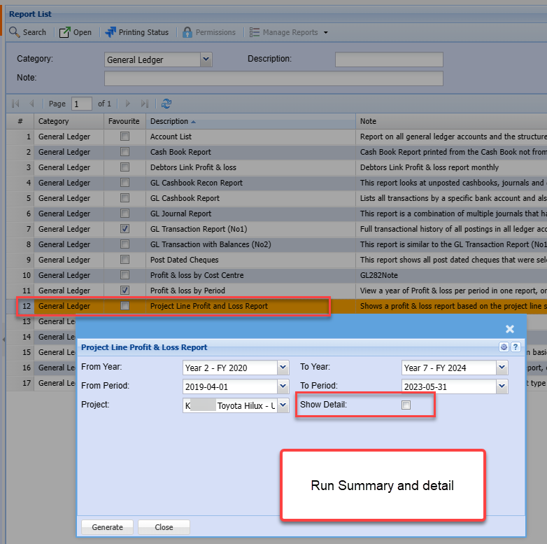 | Show Detail | Tick the Show detail to have the detail report or Remove the tick to run the summary report |