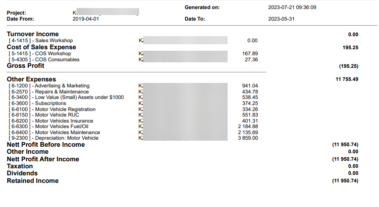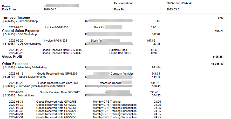 Project Line Profit and Loss Report