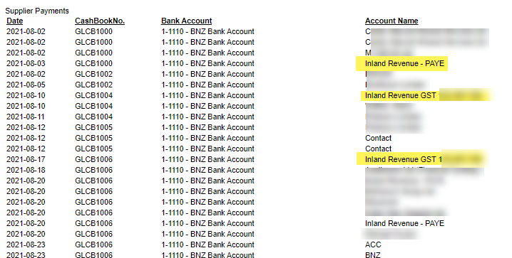 Herewith a snip of some of the suppliers setup in the system which need to be excepted from the VAT / GST payment method report.