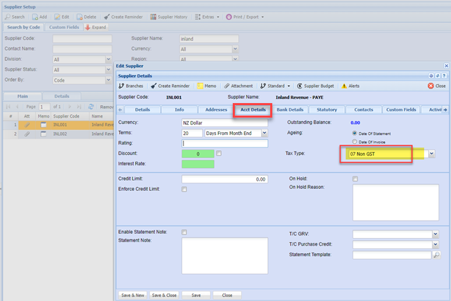 Before we start running the VAT / GST reports, we need to exclude some of the suppliers from the VAT / GST claim.