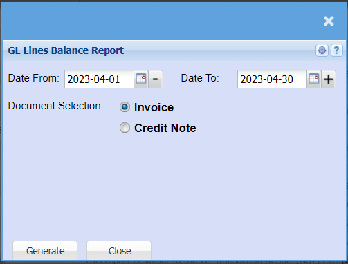 View the transaction lines for a specific document type and date range.