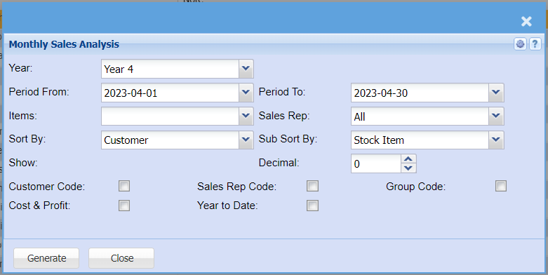 | Year to Date | Put the tick on for the report to display year to date |